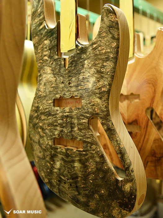 ボディトップに使用されているBUCKEYE BURL(バックアイ・バール)は、職人さんよりアドバイスを頂きながら、極上工房ストック材の中から選定させていただきました。