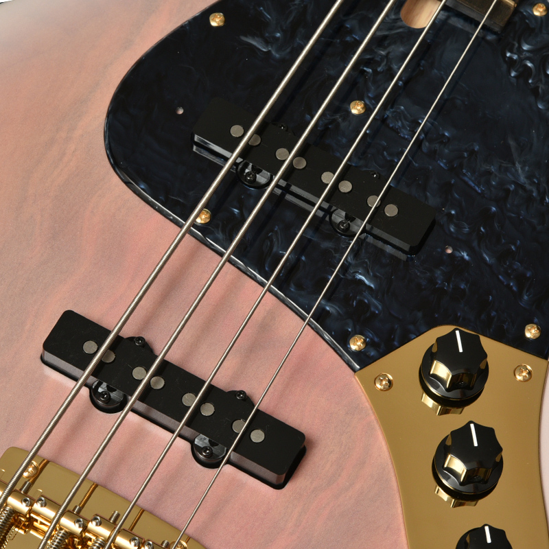 ピックアップ位置はブリッジ位置に若干近づけた70年ライクな配置に設定。サウンドがよりトレブリーになり、ベースラインのみならず、テーマやソロでもよく抜けます。 桜トップ、アッシュボディは高音域と低音域がよく出る材であるため、レンジが広く様々な音楽ジャンルに対応することが出来ます。 音の立ち上がり、そしてキレが良いためスラップなどを多用する演奏スタイルにも向いており、様々な現場で活躍するモデルとなりました。