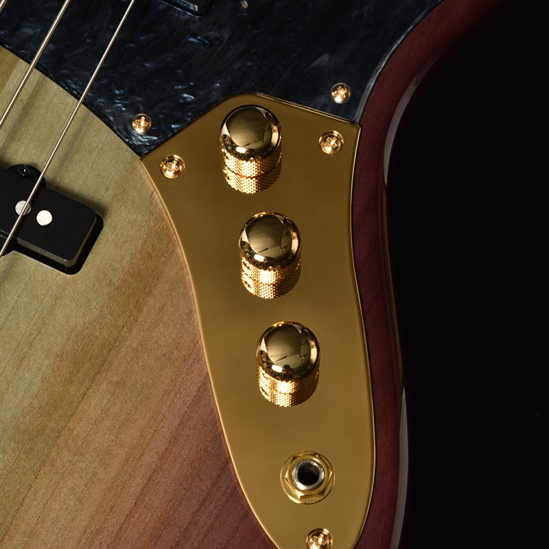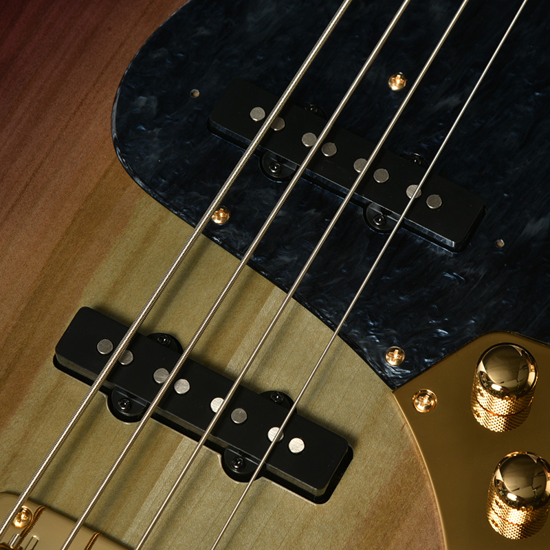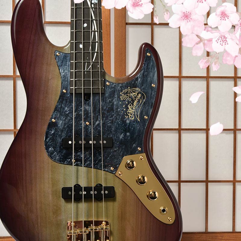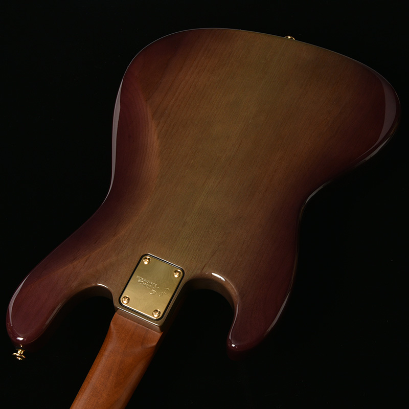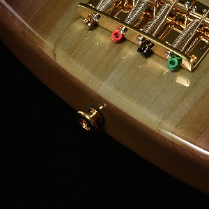 本モデルのボディトップは京都府産の桜材を使用。桜は比較的硬質な材であり、音響面においては煌びやかなサウンドを特徴とします。ボディバックに定番のアルダー材を用いることで、桜材特有のニュアンスを備えつつも、幅広いジャンルでの音作りを可能とします。