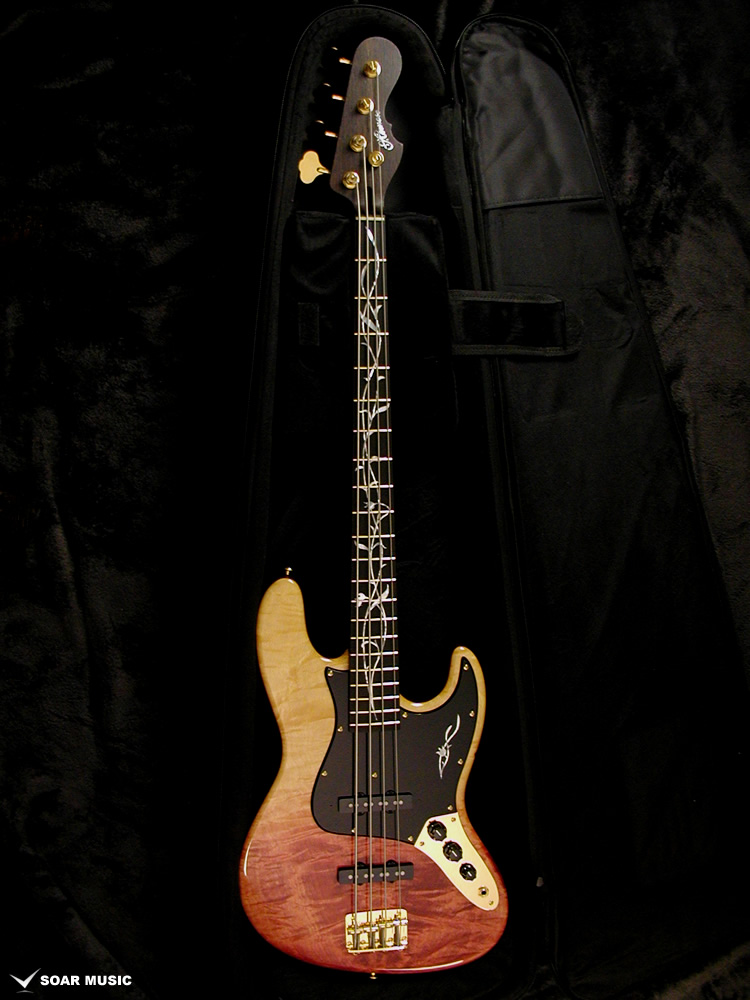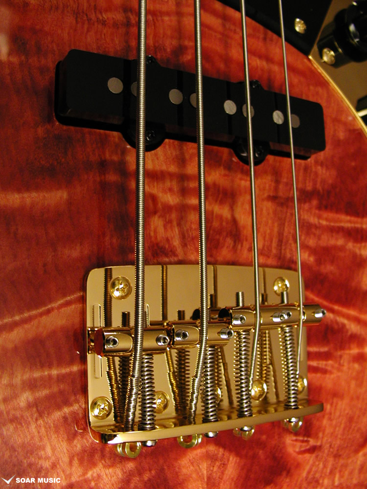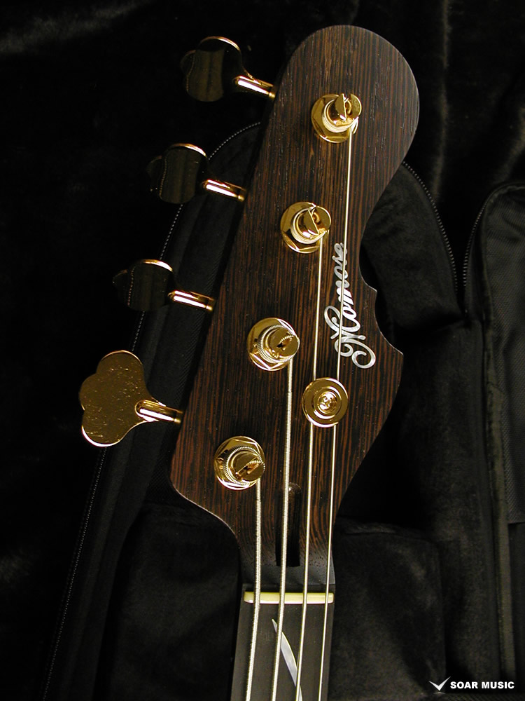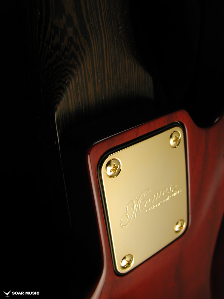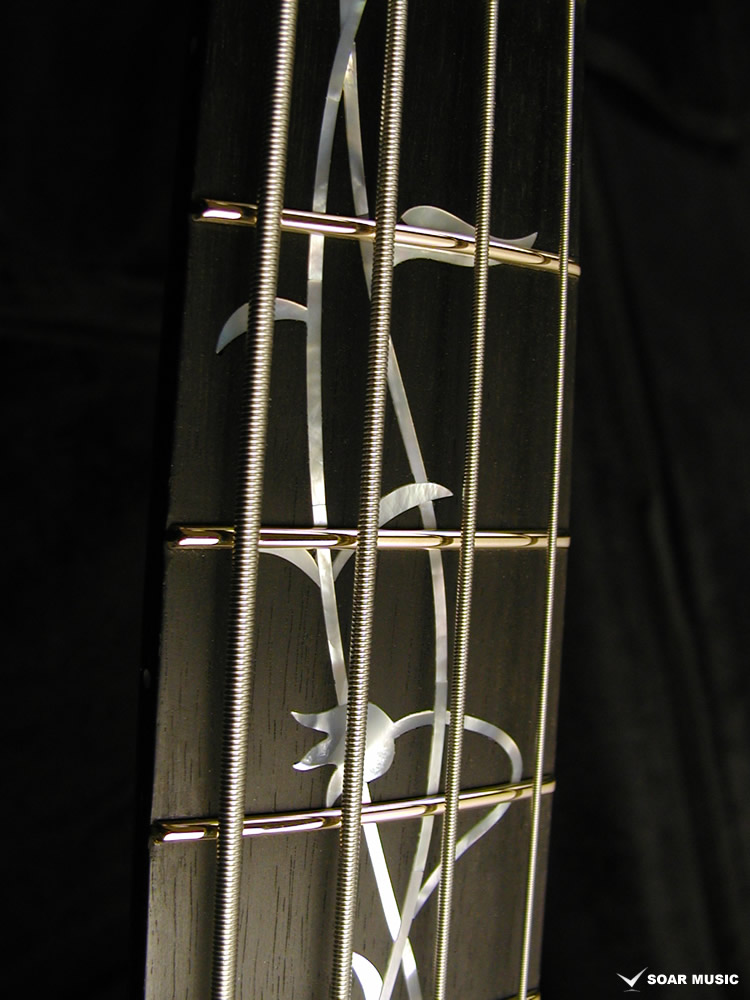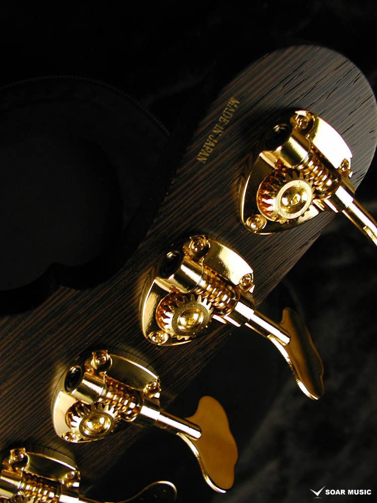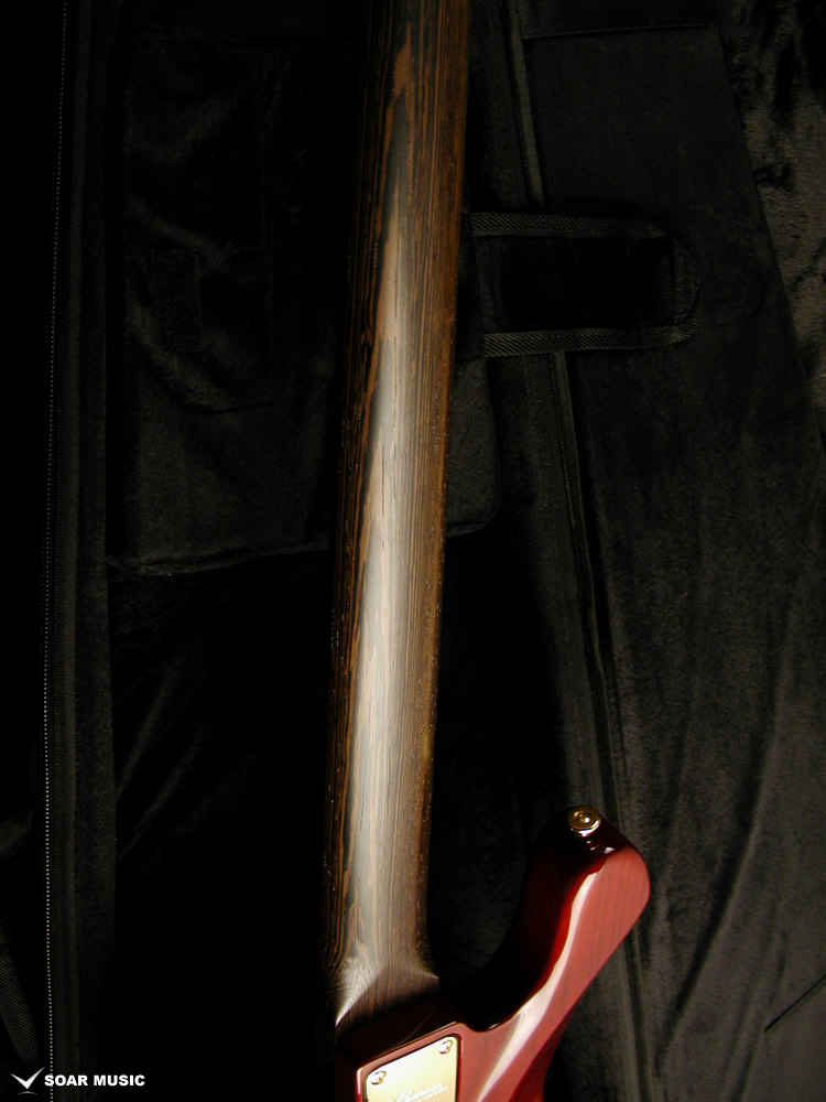 Wenge:ネックに使用されているWengeは、リップルマークとよばれるさざ波のような木目が特徴的なアフリカ産の木材です。肌目は粗いが大変強度が高く、硬いことから特異な木材として知られています。その音は硬さはなく、重厚感や存在感のある中低音域に魅力を感じます。
