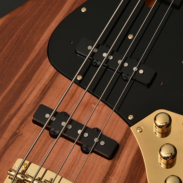 ピックアップには通常ラインナップでもご好評をいただいている、Momoseオリジナル”VJ-1″ピックアップを二基マウント。アルニコ5マグネットを採用し、JBタイプのサウンドに求められるブライトな高音域と厚みのある低音感を兼ね備え、多様なシーンでのプレイを支えます。