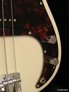 『MJ』モデルは一般的なJBタイプと比べ、高音弦側のホーン部の抉りが大きく取られています。 ジョイントプレートの落とし込み加工