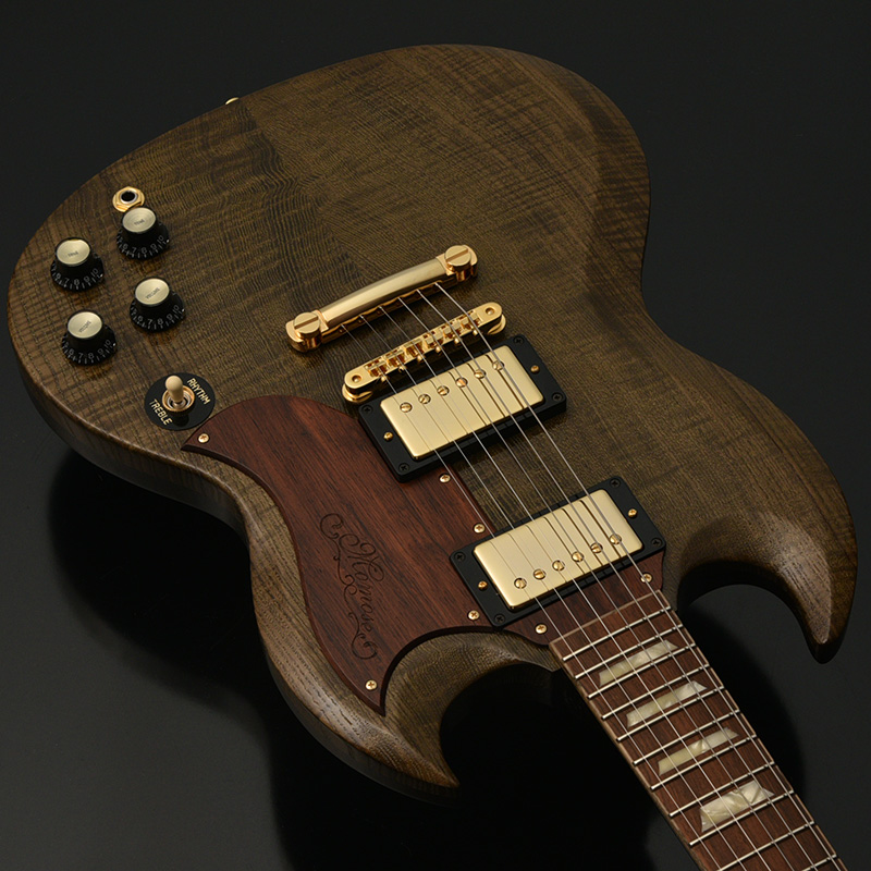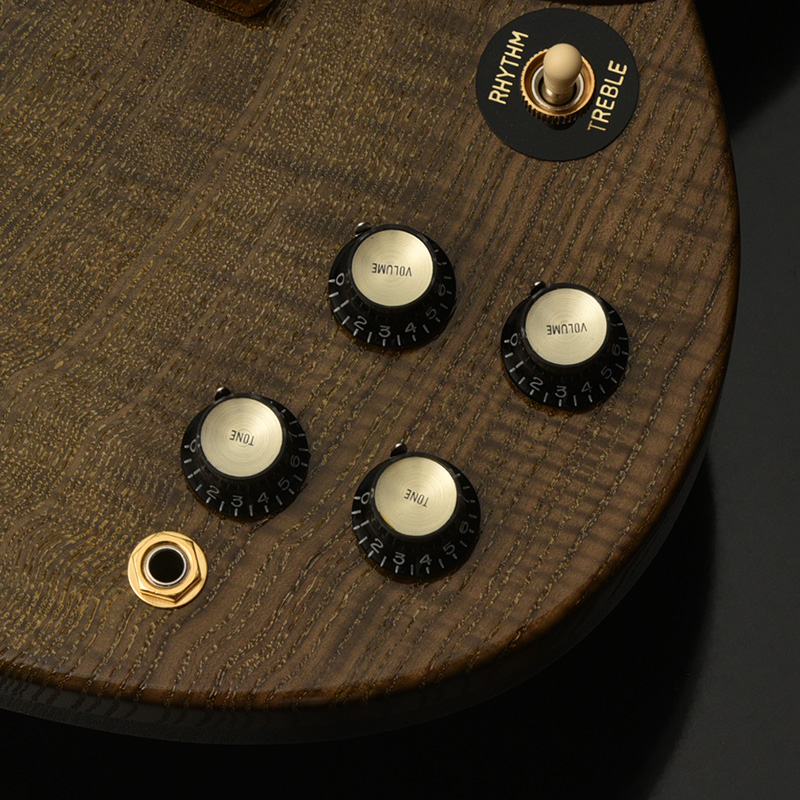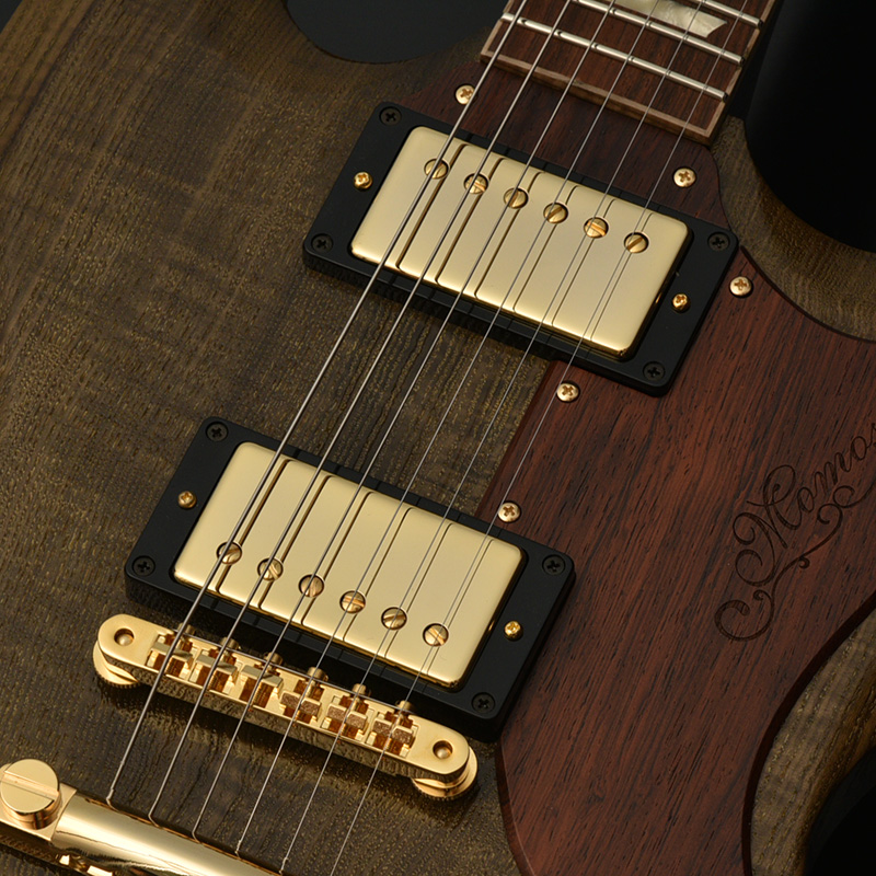 ピックアップにはアメリカ、ノースカロライナ州で製作しているハンドワイアリングピックアップ 「Mojotone」をセレクト。250ブランド以上ものOEMも手掛けており、ビンテージフィーリングの中にも個性があり高い評価を得ています。本機に搭載される「59Clone Humbucker」は、オリジナルPAFにインスパイアされた倍音成分を含む厚みのあるナチュラルサウンドが特徴的。細かなパーツまで全てがUSA製であり、その完成度の高さを随所からうかがえます。