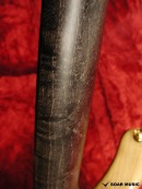 緑灰色と灰白色の材本来の独特の色合いに、うっすらとフレイムの杢が程良く入っており、派手すぎないエキゾチックな杢目が独特の雰囲気を醸しています。また、ボディバックには1ピースのアッシュボディを使用しています。