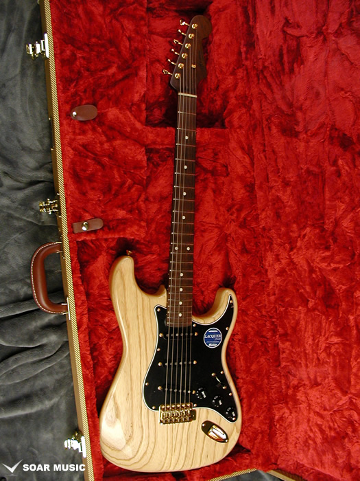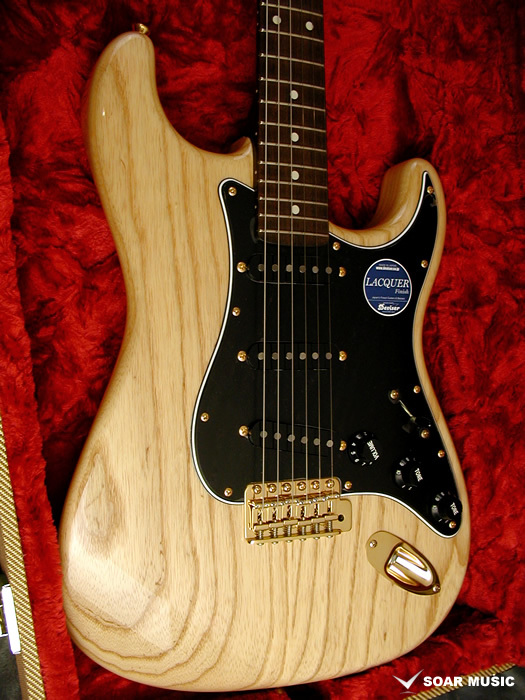 アッシュ材特有の、はっきりとした木目の曲線を生かすナチュラルカラーの仕上げが、ブラックのピックガード、ピックアップ、コントロールノブを引き立たせることで今までのカラーラインナップの枠内に留まらないデザイン。