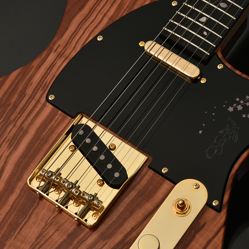 ピックアップはMomoseオリジナルピックアップ『VT-1』を搭載し、素材本来が持つトーンをナチュラルに引き立てたサウンドが特徴的。メイプルネック、アルダーボディと組み合わさったことで桜トップとのバランスが取れたTLモデルらしいサウンドが出力されます。