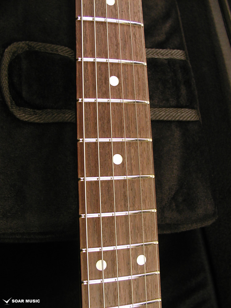 指板サイドには指板と同材を使用したウッドバインディングを採用。滑らかな指板サイドを実現するほか、長年の使用でフレットのバリが飛び出してしまうようなトラブルも防止します。