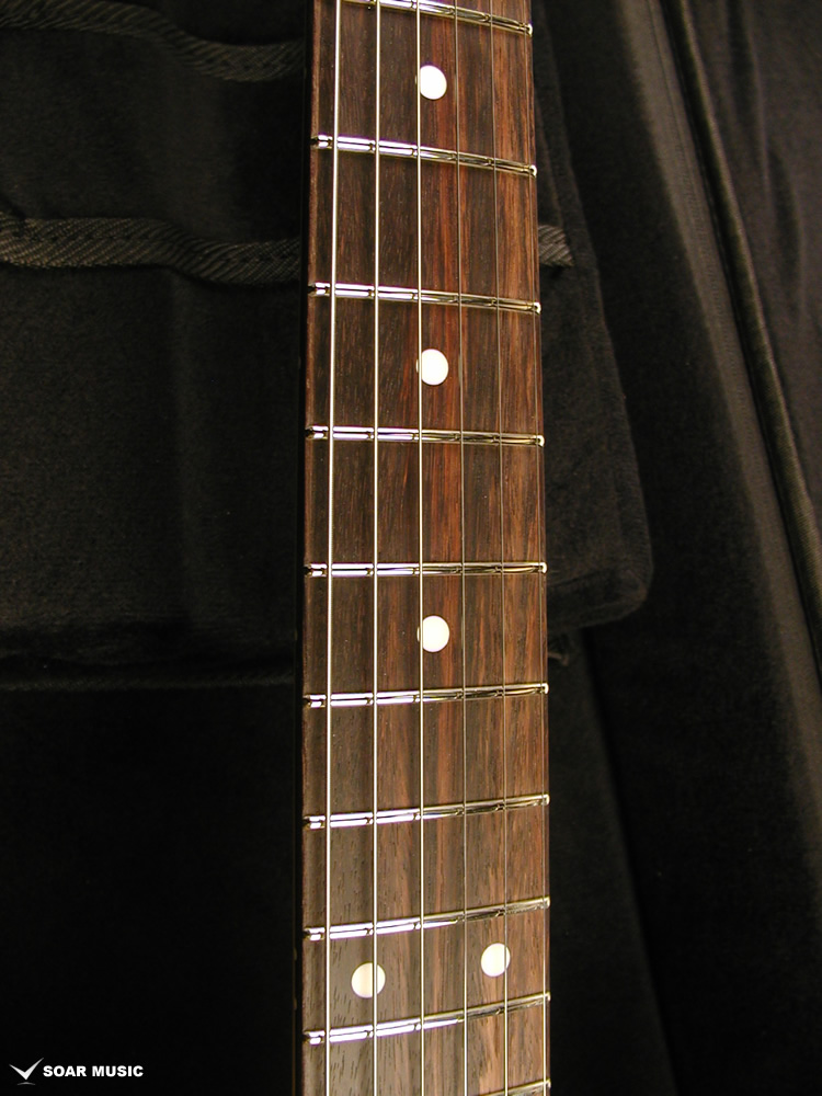 指板サイドには指板と同材を使用したウッドバインディングを採用。滑らかな指板サイドを実現するほか、長年の使用でフレットのバリが飛び出してしまうようなトラブルも防止します。