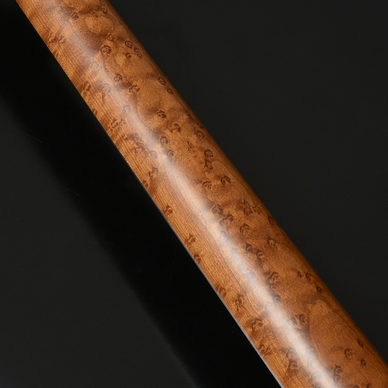 ジリコテ材は特有のバーズアイ杢から広がる円形の杢目が見られ、ラテアートや液体を流した様にも見える折り重なったマーブル柄はこの材の魅力で、無着色で木地の色味が濃いのも特徴的です。