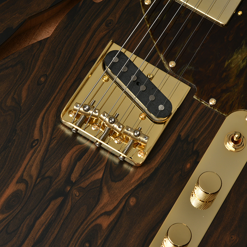 本モデルはボディトップ材に存在感のあるジリコテ材を採用しております。
