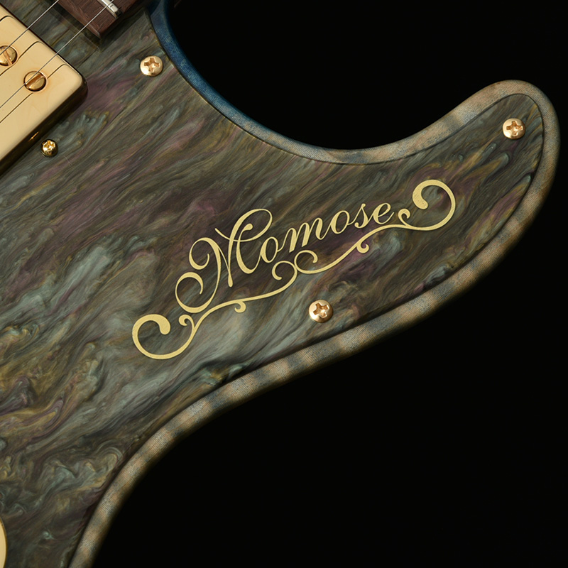 シリーズ名に含まれる『Virtuoso』とは芸術の(特に音楽の)名人、名手、大家、巨匠、という意味を持つ英語です。誰もが自分の音楽を表現し、発信できるようになった現代に求められる仕様を、Momose独自の解釈により盛り込みました。Hipshot Glip-Lockペグの搭載やGOTOH製のアーミングに優れたブリッジの新採用など、ハードウェアも一新されています。