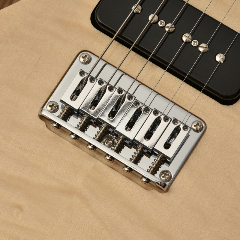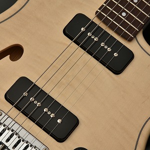 アメリカのハンドワイヤリングピックアップメーカーMojotoneのP-90ピックアップを搭載。リアポジションはやや出力の高い Hot Rod モデルを搭載しフロントとのバランスを取っています。レスポンスの良さと、エッジのあるアタックと丸みのあるウォームなトーンを併せ持ち、幅広いシーンで活躍します。