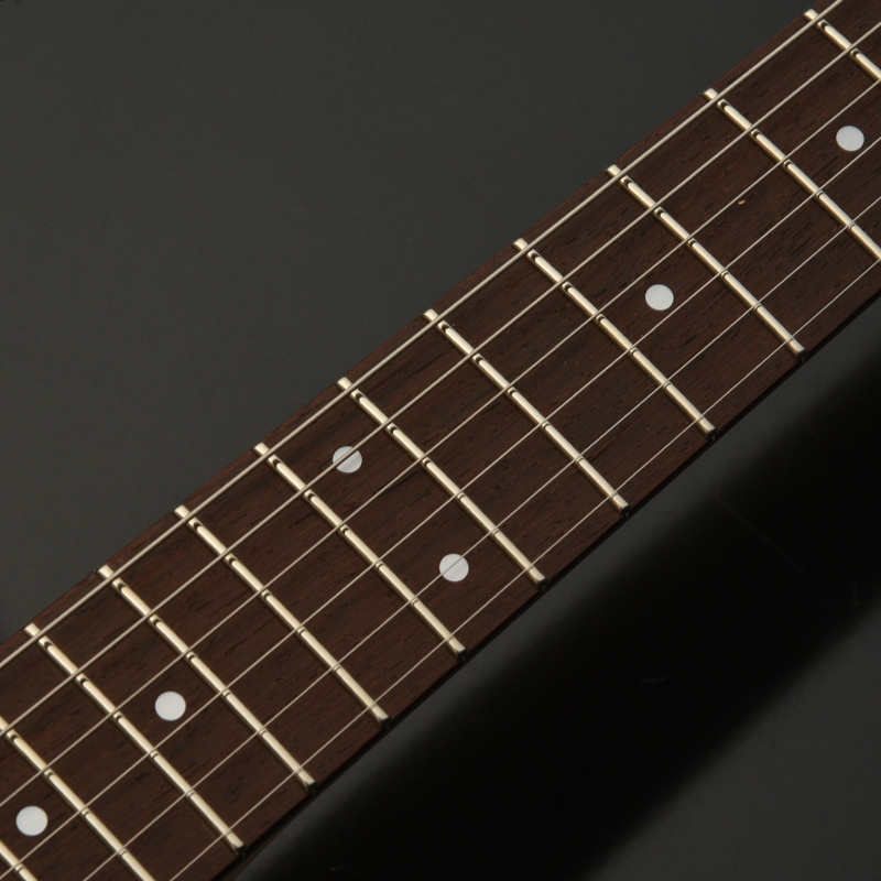 所謂「ロングスケール(25 1/2インチ)」と「ミディアムスケール(24 3/4インチ)」の中間である25インチスケールを採用。ボディ形状とボルトオン構造から想像されるよりも若干緩めのテンション感が、独特な「ルーズ感」を生み出します。ロングスケールのギターだとテンション感がきつくチョーキングなどもし辛いと感じるプレーヤーにもおすすめです。