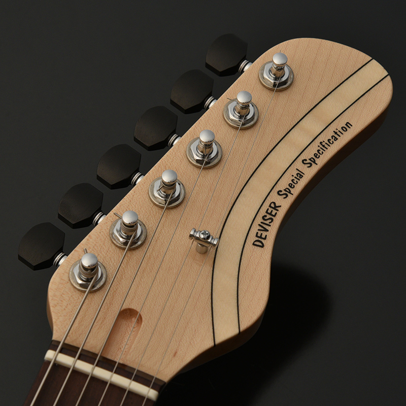ヘッドにはボディトップと同じ楓をアクセントとして入れています。トラスロッドアジャストの溝幅を広めに拡張し、ロッド調整がより容易となりました。トラスロッドのナットを付け替えることも可能となり、よりユーザーに寄り添った仕様となっています。