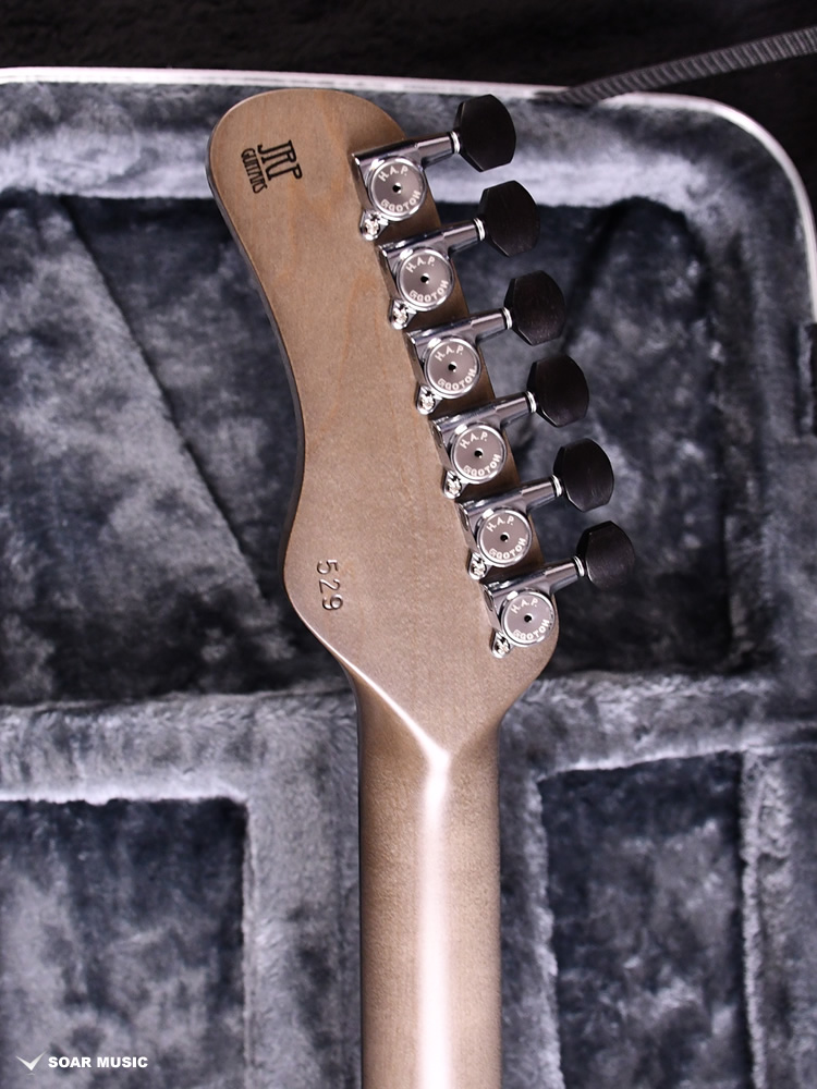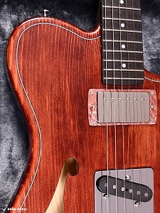 ホロウボディの魅力と独特なサウンドを生み出すため、「ロングスケール(25 1/2インチ)」と「ミディアムスケール(24 3/4インチ)」の中間である25インチスケールを採用しております。ボディ形状とボルトオン構造から想像されるよりも若干緩めのテンションが「ルーズ感」を与え、ロングスケールのギターだとテンション感がきつくチョーキングなどもし辛いと感じるプレーヤーにもおすすめです。
