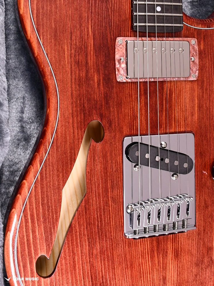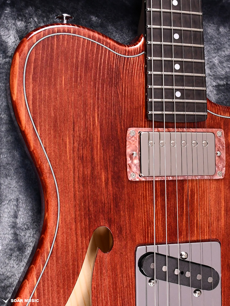 やわらかく、そして軽い木材として知られる赤松。ホロウボディも相まって取り回しが良く、一般的なアルダーやアッシュとも似て非なる、抜けの良く扱いやすいサウンドが特徴です。日本の気候のもとで生まれ育った、赤松にしか出せない音をぜひご体感ください。「ATQ-MRN(アンティーク・マルーン)」と名付けられたカラーは、くすみを帯びた和の面持ちを感じさせるカラーです。