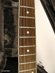 番手の違うサンドペーパーやスチールウールなどを使い分け、各フレットのエッジ部分に丁寧に丸みを付けることにより、左手の移動が滑らかになりました。ハイフレットまで滑るように移動が可能です。
