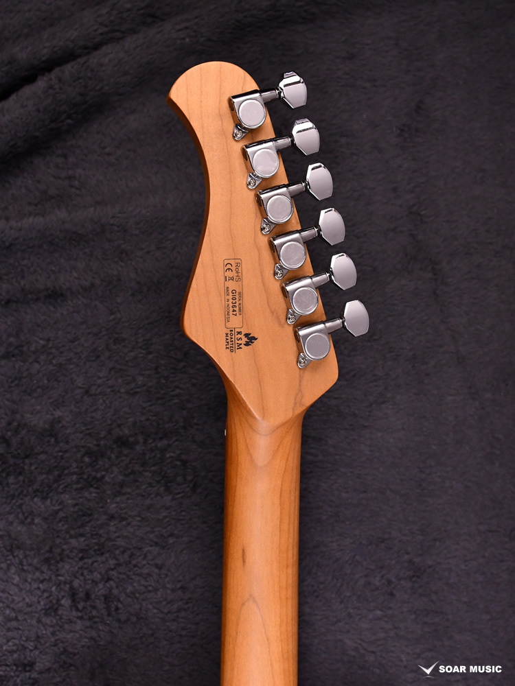 ネックにローステッドメイプルを採用することで、ハイエンドモデルの様な雰囲気を醸し出しています。ネックとしての剛性が高いためトラブルが少なく、また音の立ち上がりが良いカラッとしたビンテージギターのようなトーンを生み出します。(※メイプルの杢目には個体差があります)