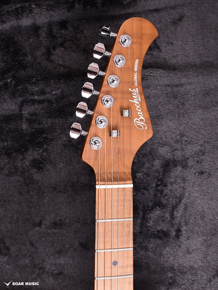 ローステッドメイプルをネックと指板に採用し、1ランク上のコンポーネントを搭載した実戦仕様の1本に仕上がりました。Bacchus Global seriesの高いコストパフォーマンスを実感出来る、細部までこだわりが込められたスペックです。