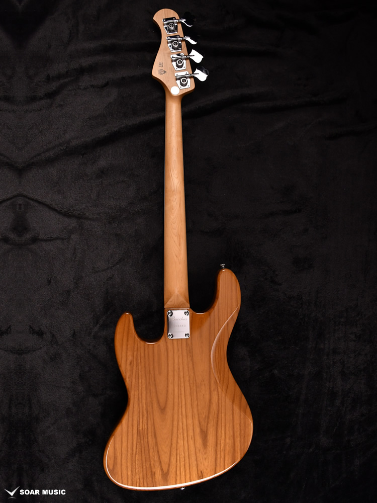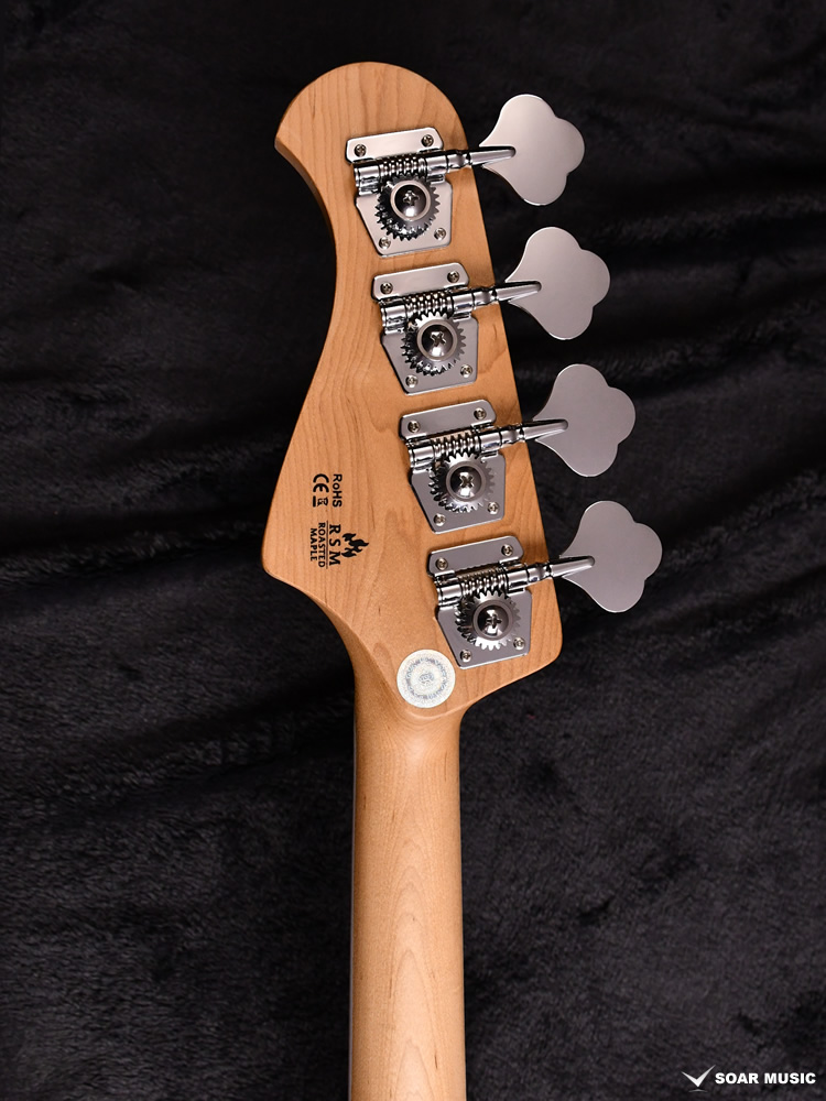 コントロールは一般的なJBスタイルの2Vol、 1Tone構成でTurbo Switchも搭載。 トーンノブをプルアップすると二つのピックアップをシリーズ接続し、ハムバッキングPUの様な太いサウンドを作ることが出来ます。(ターボスイッチをONしている間のボリュームコントロールはフロントボリュームノブで行い、リアボリュームノブはバイパスされます。)
