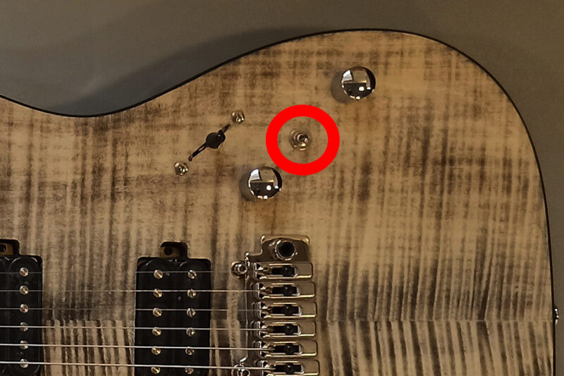 コイルタップスイッチとは、2つのコイルが連なって構成されているハムバッカーのピックアップのうち、1つのコイルからの信号をキャンセルし、もう1つのコイルからの信号のみを発信できるように切り替えるスイッチのことです。