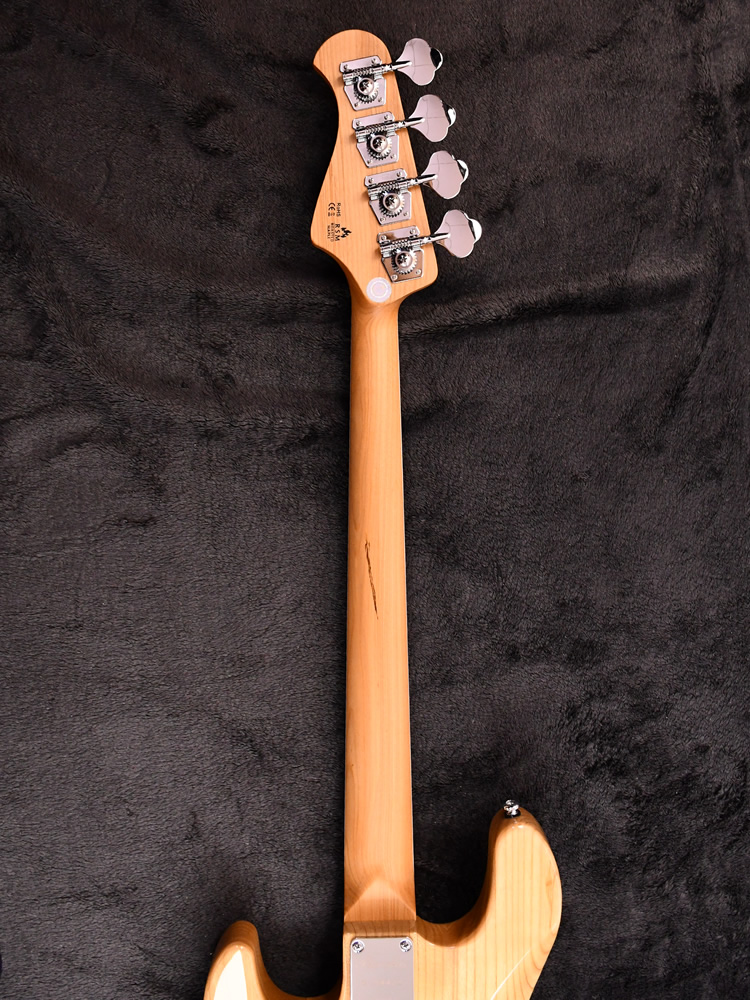 コントロールは一般的なJBスタイルの2Vol、 1Tone構成でTurbo Switchも搭載。 トーンノブをプルアップすると二つのピックアップをシリーズ接続し、ハムバッキングPUの様な太いサウンドを作ることが出来ます。(ターボスイッチをONしている間のボリュームコントロールはフロントボリュームノブで行い、リアボリュームノブはバイパスされます。)