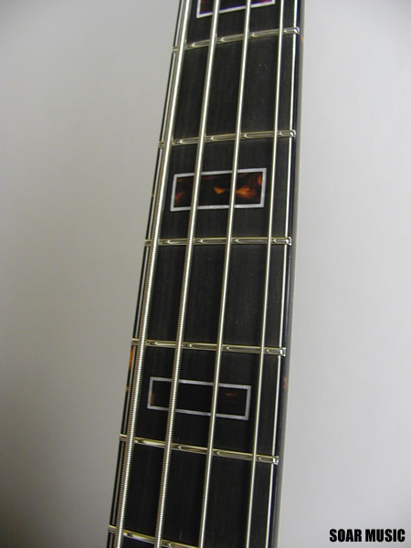 木目が美しく、材の鳴りを損なわないオイルフィニッシュやポジションマークも淵にインレイを施すなど、こだわりのルックスで、独特の存在感を放っています。 |