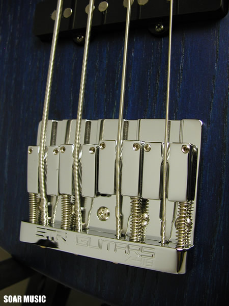 また、ブリッジにはブロック状のブラス材からブリッジプレート、サドルを高い精度で削りだして製作されているSTR Guitarsブランド製のX-419を搭載。 ブリッジプレートとサドルに凸凹を設ける事で、弦振動による横方向へのガタつきを押さえ、 弦振動を効率よく伝達し、安定したピッチとサスティンの向上に一役買ってます。 また、指板サイドにはホワイトのバインディングを施し、ボディ淵のバインディングを無くすなどのマイナーチェンジを施し、よりシックなルックスに生まれ変わっています。 |