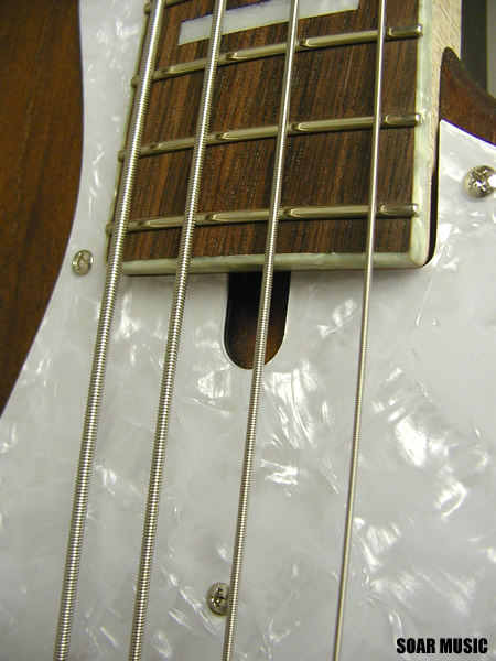 指板材は中低音域が豊かでウォームなサウンドが特徴のローズウッド、ボディには低音域〜