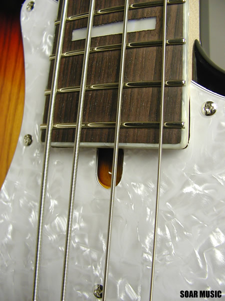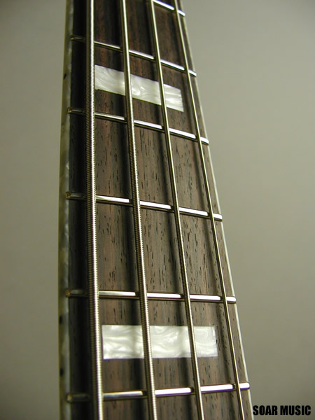 指板材は中低音域が豊かでウォームなサウンドが特徴のローズウッド、ボディには低音域〜