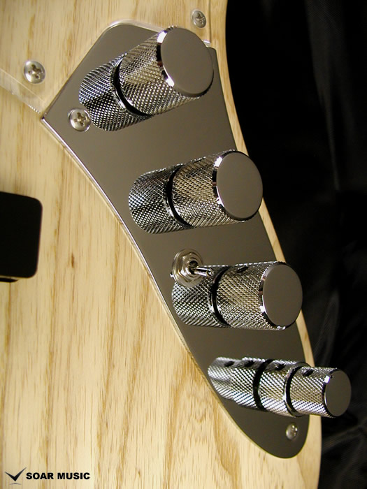コントロールは1ボリューム、ピックアップバランサー、マスタートーン、トレブル/ベースEQ(2軸2連ポット)、プリアンプON/OFFスイッチが搭載されており、扱いやすくシンプルでコンパクトにまとめられたコントロールプレートの他、マスタートーンを設けることでパッシブ時(プリアンプOFF)でもトーンコントロールが可能となり、より幅広く汎用性の高いニーズに合わせた多彩な音作りを可能にします。 |