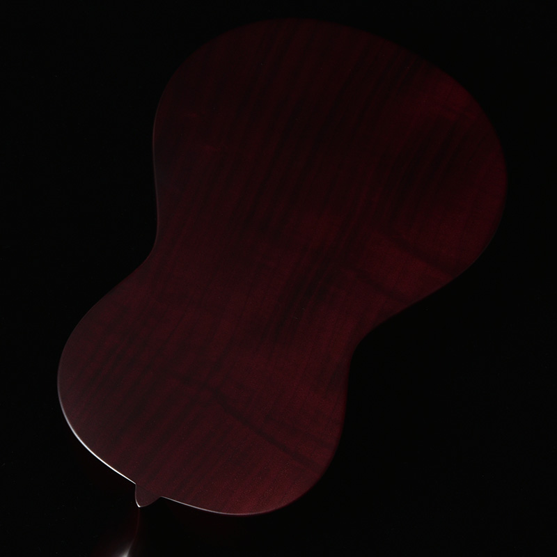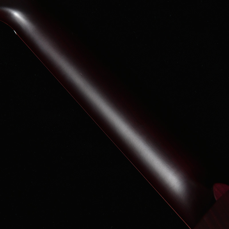個体ごとに異なる桜本来の木目を楽しんで頂く為、塗装はシースルーかつマット仕上げに。 本機は桜ギターラインナップの中でも特に人気のある、夜桜をモチーフにした『Yozakura』カラーを採用しました。