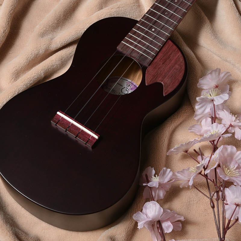 一般的にウクレレに使われることの多いマホガニー材やメイプルなどに比べ、桜は比重が高く固い木材であるため、ボディだけでなく、ネックにも桜材を使っており、コンサートウクレレらしいゆったりとした音量感やピッチの安定感、ハリのある中域、そして桜特有の甘さが加わったサウンドが特徴的。