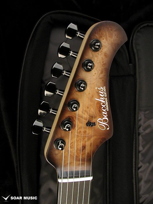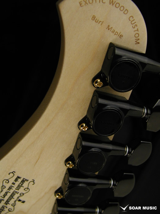 アメリカMojotoneピックアップの"Black Magic"ハムバッキングピックアップを使用しました。両側ともにアジャスタブルポールピースで、細かくセッティングをつめることが出来ます。深いディストーションでパワフルな音を生み出すこともできますが、クリーントーンでの明瞭感も特筆ものです。