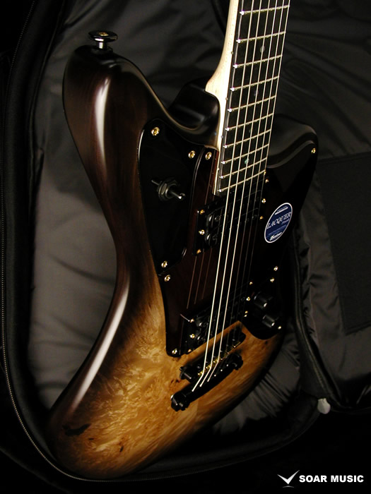 スーパーロングスケール(27inch/686mm)を採用。ダウンチューニングを多用するプレイヤーに新たな選択肢を提案します。アメリカ「Mojotone Pickups」のBlack Magic ハムバッキングPUを2基搭載し、太く伸びのあるサウンドを得られます。