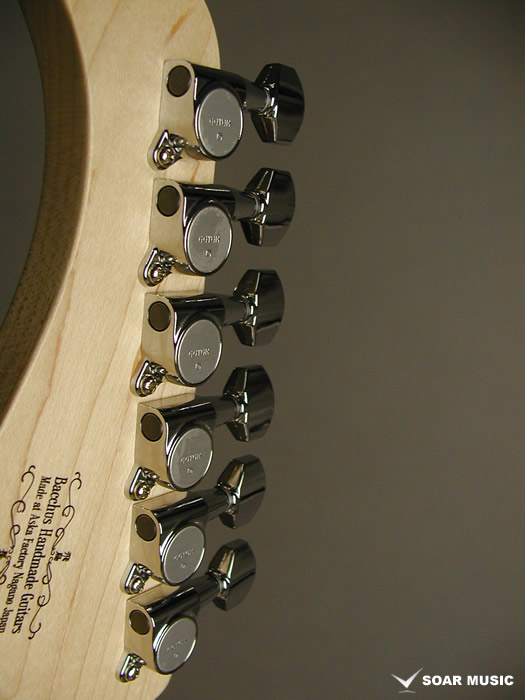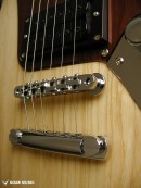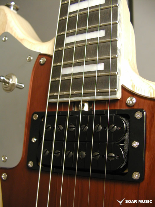 アメリカMojotoneピックアップの"Black Magic"ハムバッキングピックアップを使用しました。両側ともにアジャスタブルポールピースで、細かくセッティングをつめることが出来ます。深いディストーションでパワフルな音を生み出すこともできますが、クリーントーンでの明瞭感も特筆ものです。