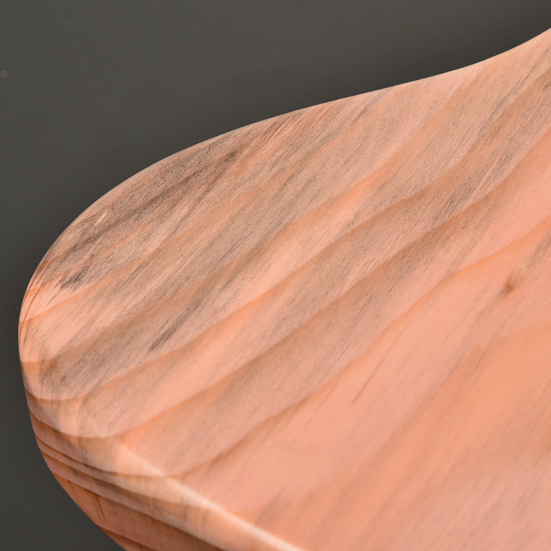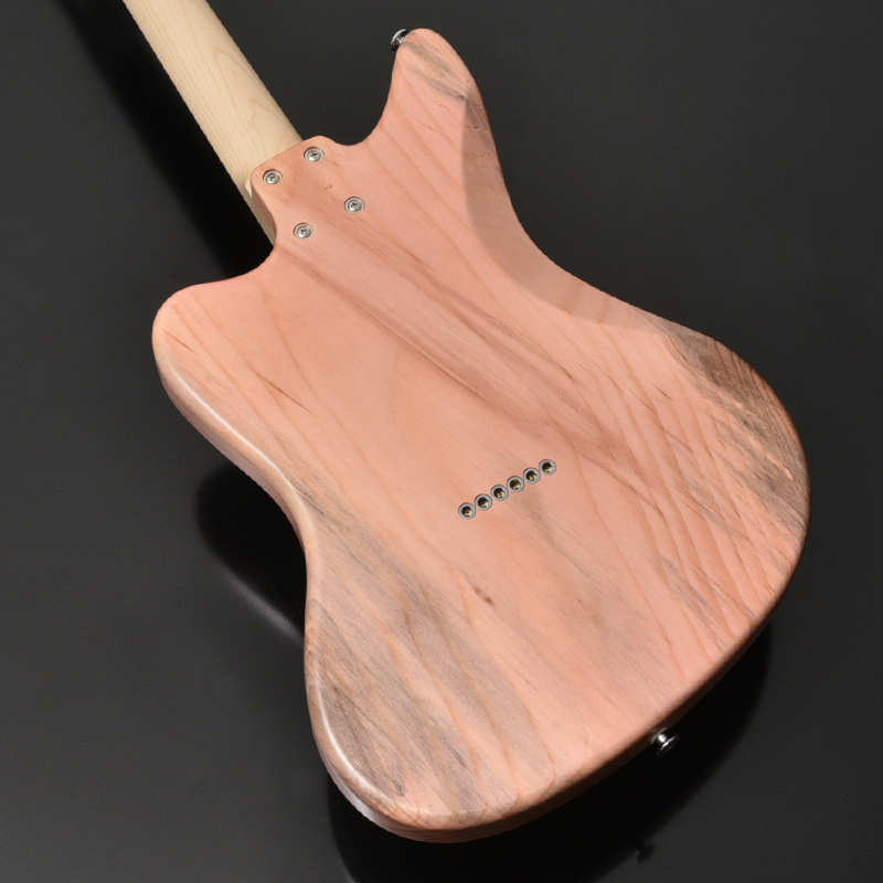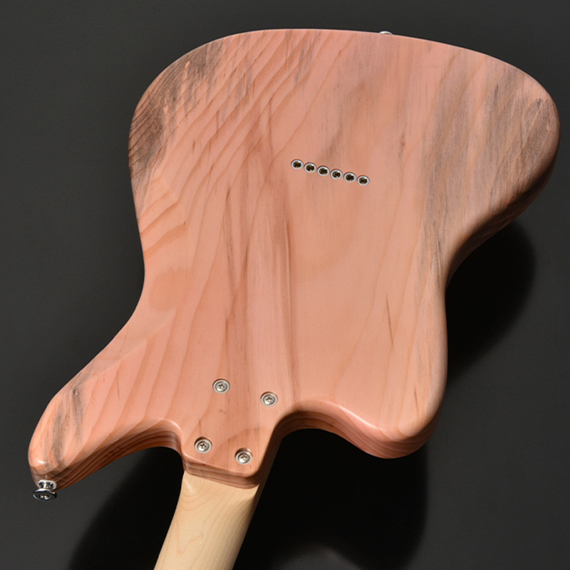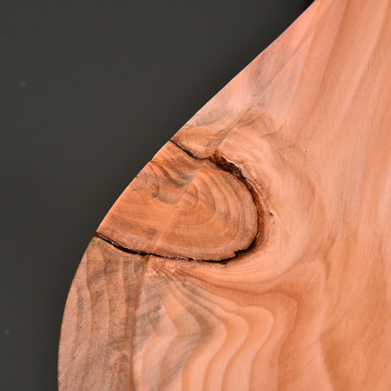 長野県の松本市内で害虫被害でやむなく伐採された赤松をボディに使用しています。通常、材料には不向きとされる節や木部の割れを敢えて生かし無骨でありながらもナチュラルな風合いとスタイリッシュさを表現しています。