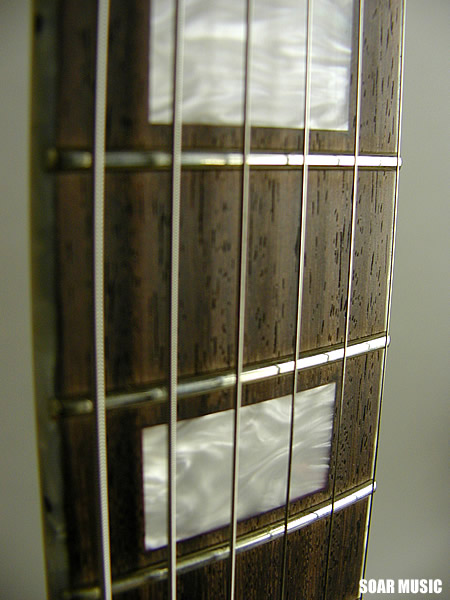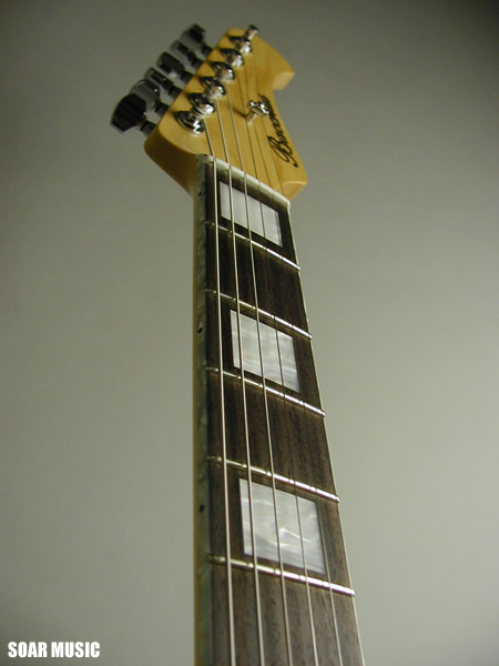 独特のボディシェイプ、ネックサイドには美しいホワイトパール柄のバインディング、