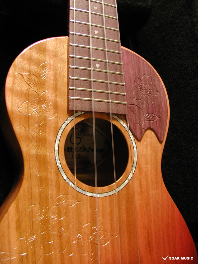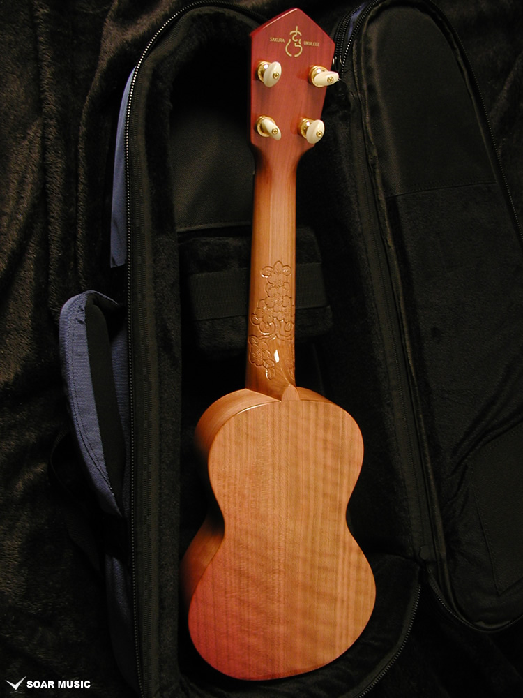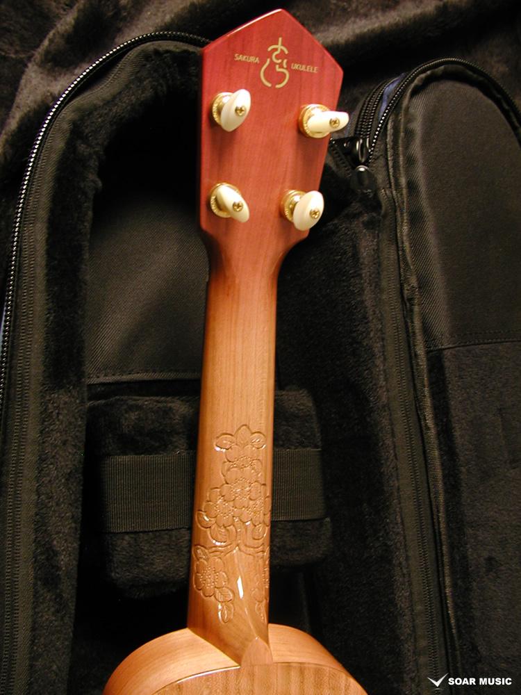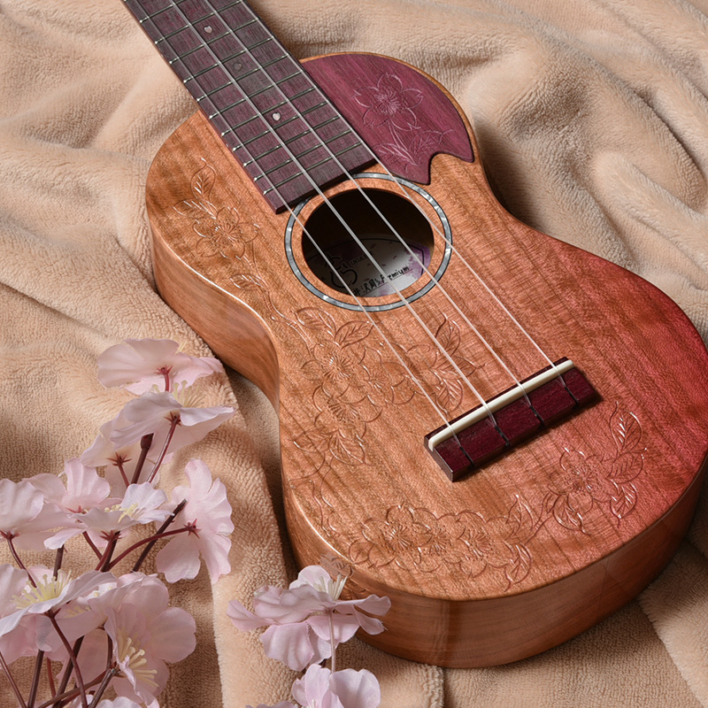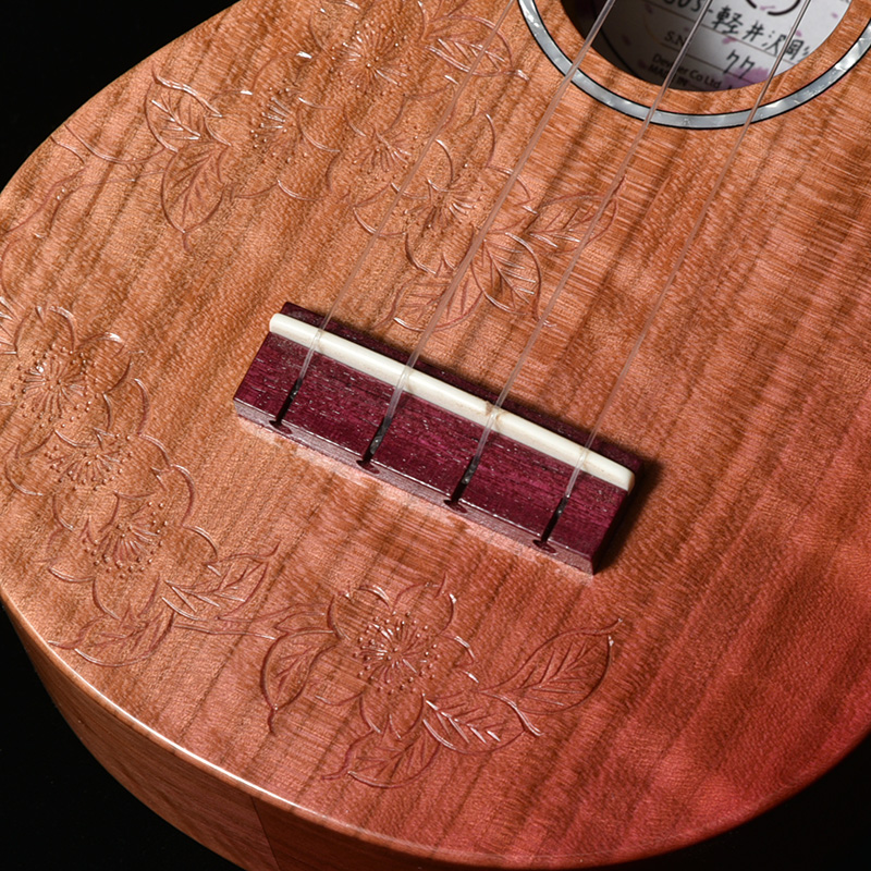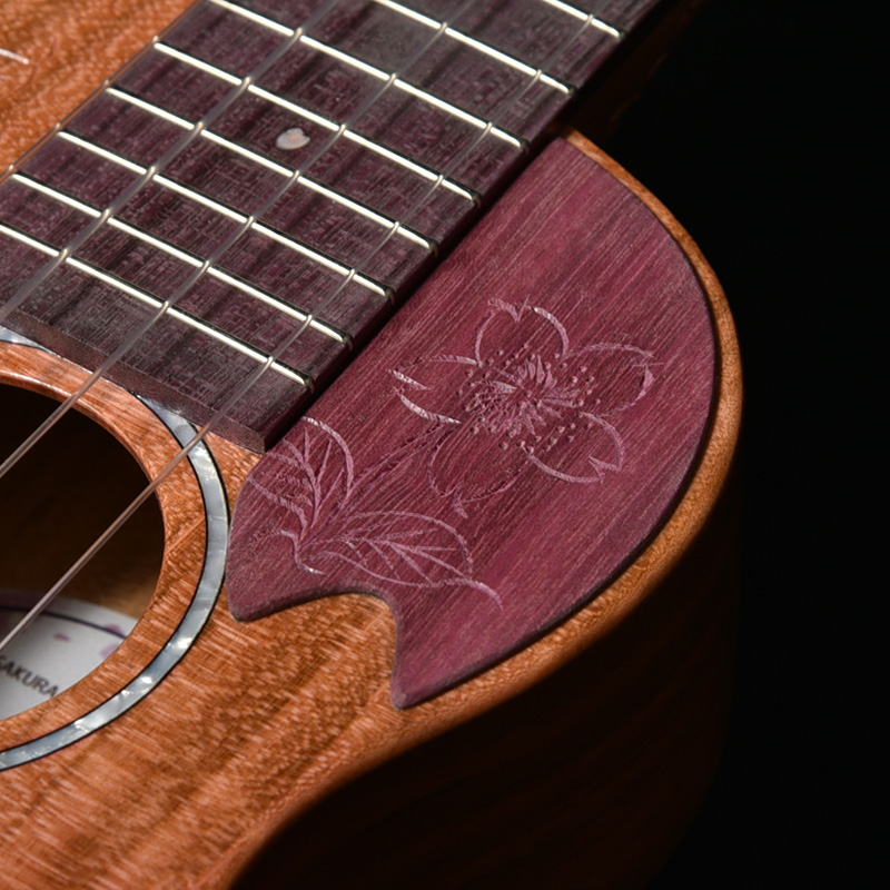 一般的にウクレレに使われることの多いマホガニー材やメイプルなどに比べ、桜は比重が高く固い木材であるため、ボディだけでなく、ネックにも桜材を使ったことで、ソプラノウクレレらしい繊細さに加えて、ハリのある中域、そして桜特有の甘さが加わったサウンドが特徴的。