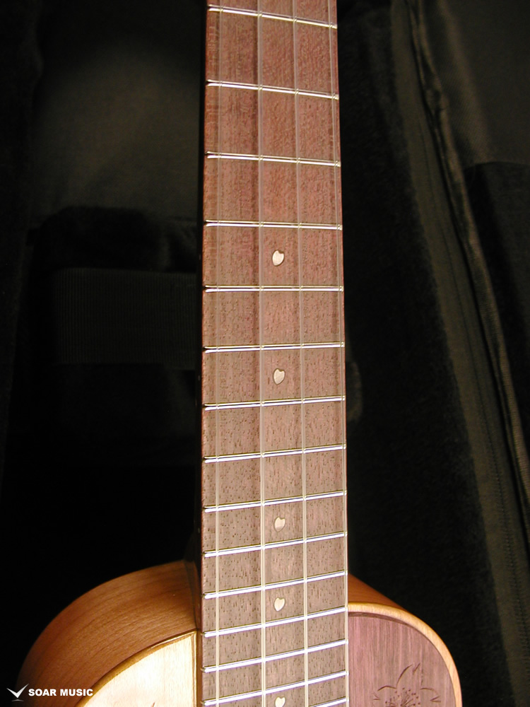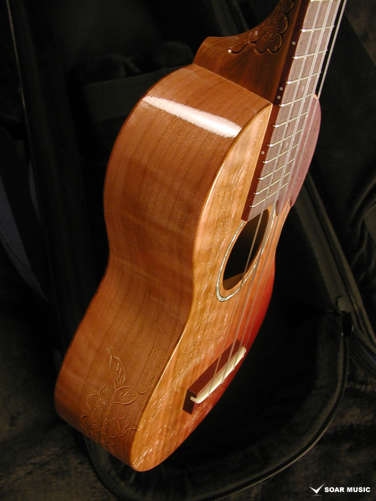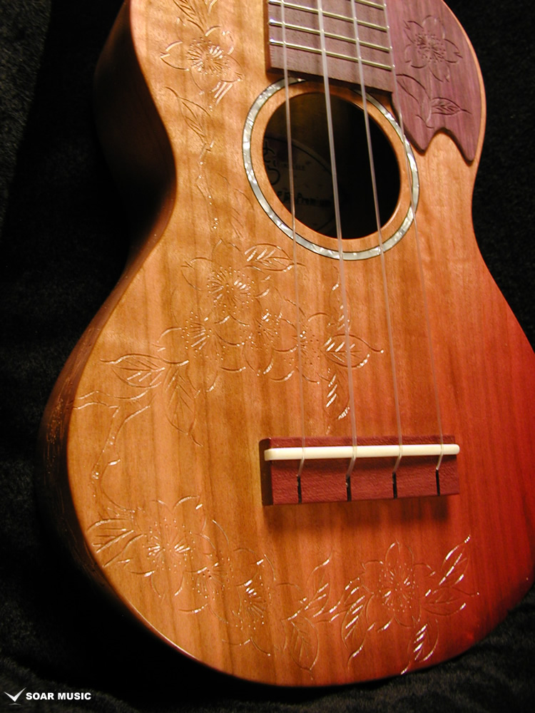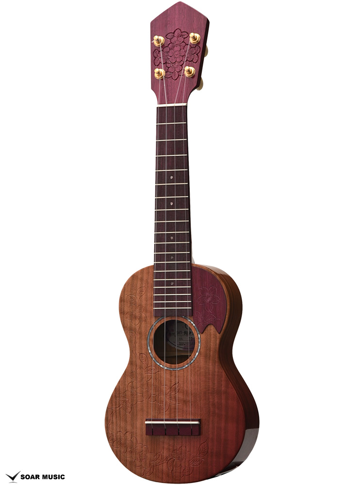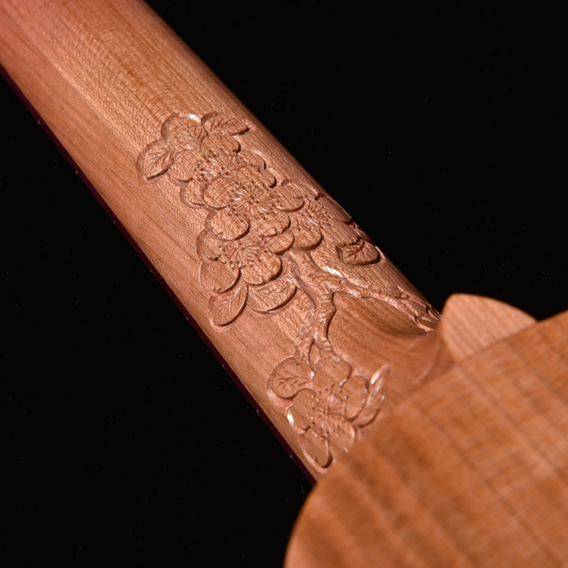 一般的にウクレレに使われることの多いマホガニー材やメイプルなどに比べ、桜は比重が高く固い木材であるため、ボディだけでなく、ネックにも桜材を使ったことで、ソプラノウクレレらしい繊細さに加えて、ハリのある中域、そして桜特有の甘さが加わったサウンドが特徴的。