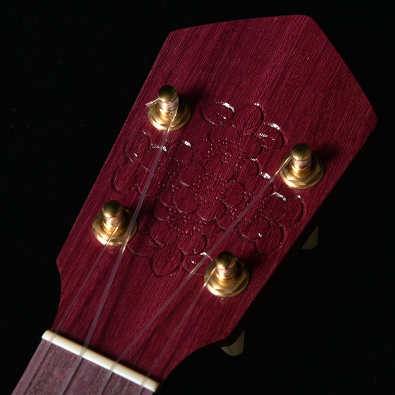 指板やヘッドトップ、ピックガードには天然で紫色の木地を持つ「Purpleheart材」を採用。ポジションマークも小さな桜の花弁デザインを取り入れました。