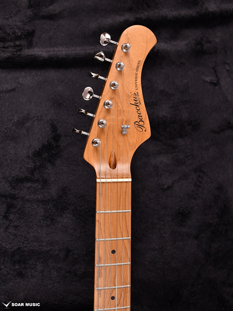 ネックにはBacchusの新機軸でもあるローステッドメイプルを採用。