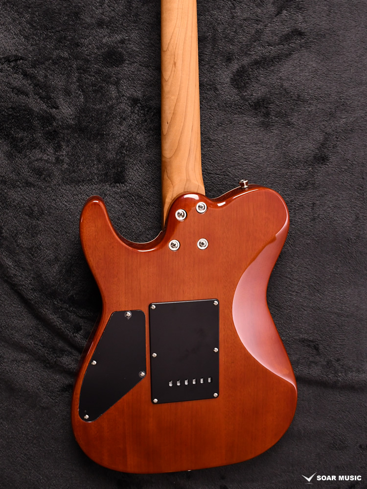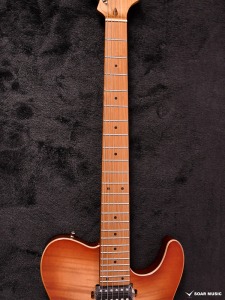 ボディトップに「フレイムマホガニー」を採用しております。フレイム杢が際立つようにボディセンターはナチュラルに仕上げ、バーストをかけることで上位機種にも引けを取らない華やかな外観に仕上がっています。