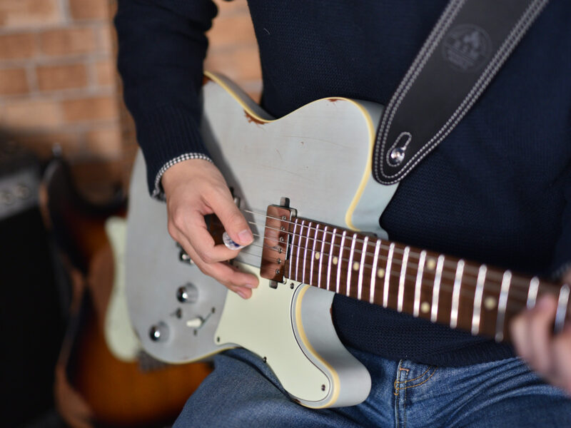 一本一本手作業で行われるボディのエイジド加工により、自然な経年変化を再現しています。一般的なグロスフィニッシュに代わりマットな風合いに仕上げることで、長年引き込んだような風格をその手に感じさせます。
