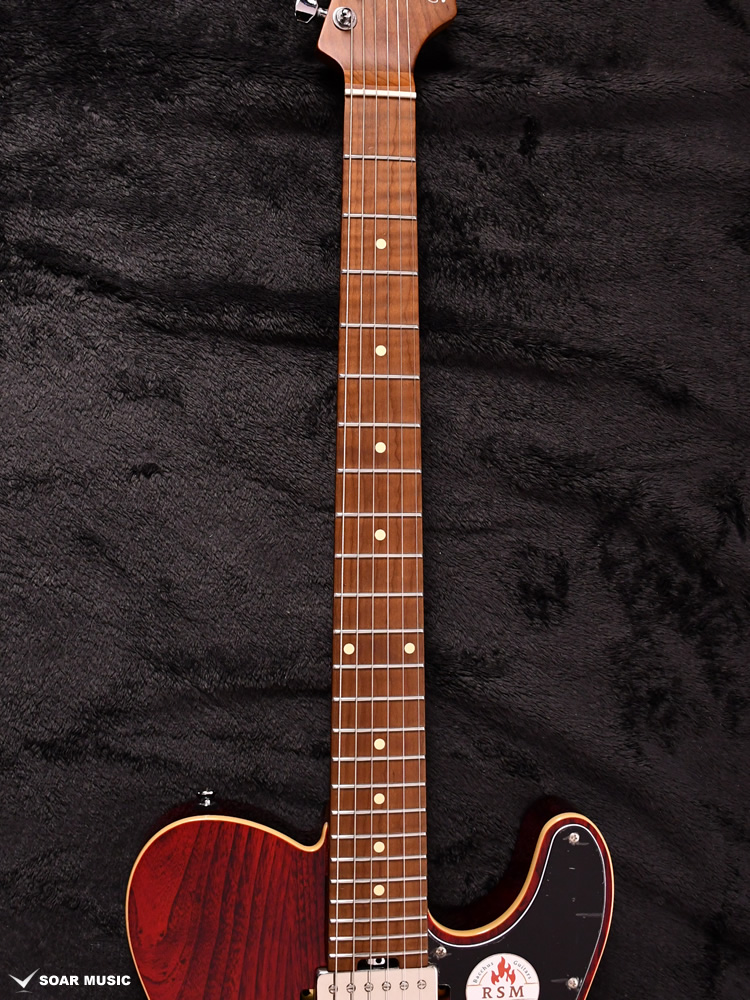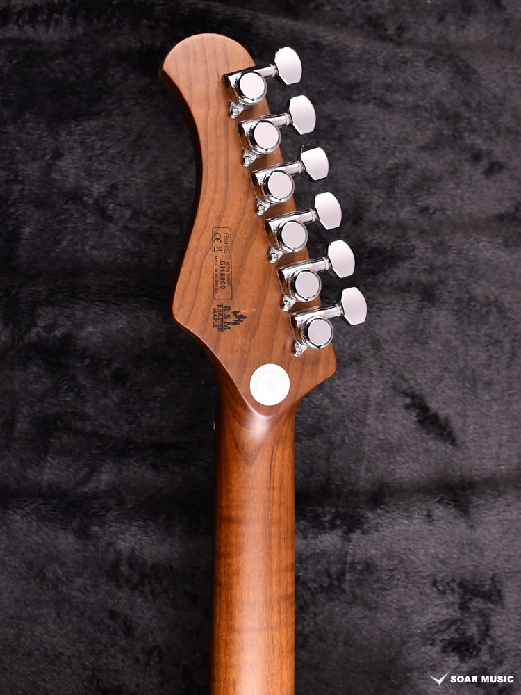 ローステッドメイプルとはメイプルを高温で加熱処理して材の中の水分や油分を揮発させることにより木材を経年変化した状態に人工的に近づけた材のことです。経年劣化が進んだ材は歪みやねじれが生じにくくなります。 ネックに使用されるとその効果は安定性だけでなくサウンドにも及び、豊かな生鳴りと経年変化したビンテージのようなこなれたトーンを生み出します。 一般的に高級機種などで用いられる材ですが、手に取りやすい価格帯に落とし込むことに成功しました。