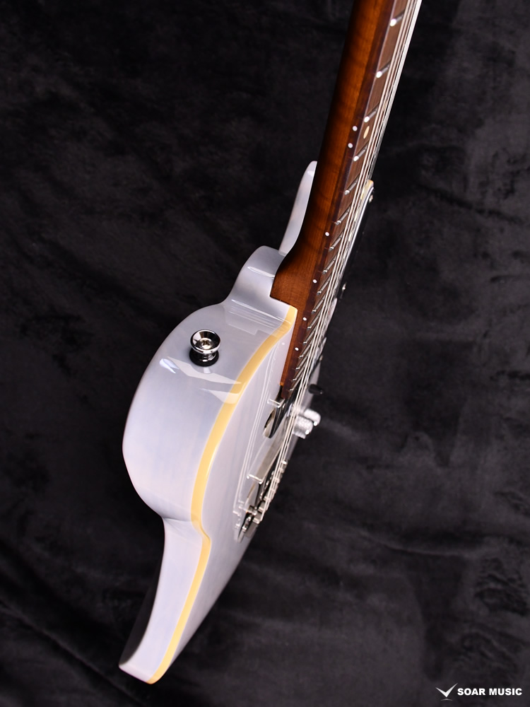 ネックとボディの接合部(ヒール)を削り込むヒールカット加工を施しました。 ジョイントプレートを廃し、ハイフレットを演奏する際に手にフィットし、違和感を感じさせない自然な形状となっています。