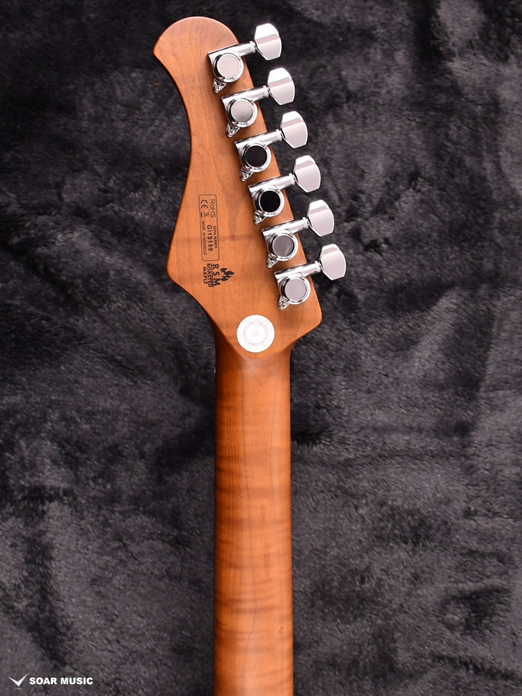 ネックにはBacchusの新機軸でもあるローステッドメイプルを採用。 ローストする工程上でゆがみが生じてしまうような木材はその時点で淘汰されるため、ネックとして搭載されている個体は非常にゆがみやねじれに強く、比較的手に取りやすい価格帯ながら長い間ご愛用できる仕様となっております。