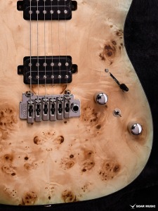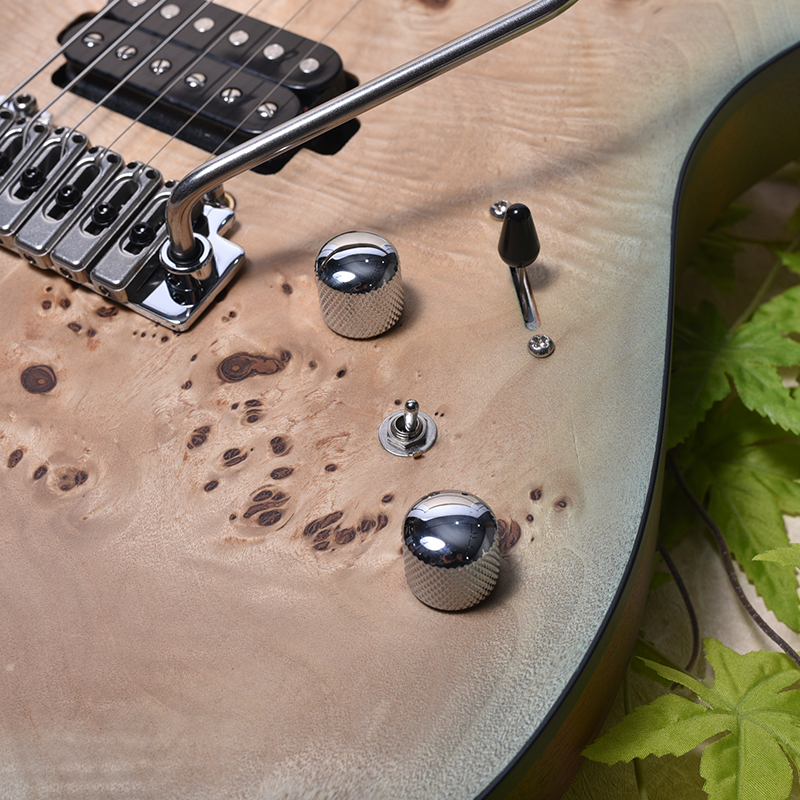 ボディトップを飾るのはバール杢の出ているポプラ材。ポプラは主に北米に分布する木ですが、北海道のポプラ並木など日本でも馴染みのある木材です。