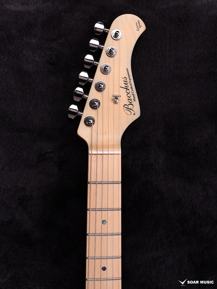 本モデルは過去にBacchus Handmade Seriesから限定モデルで登場した、KRB(渓流ブルー)とSYP(ソメイヨシノピンク)のカラーリングを踏襲した淡い色合いで塗装。薄い色のバーストは技術を要しますが、国産モデルを製造している飛鳥工場の職人の熟練した塗装技術を再現しています。