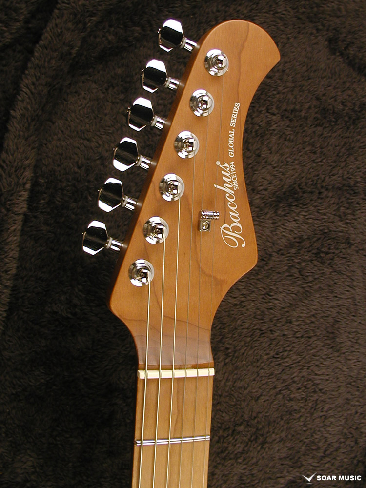 ローステッドメイプルとはメイプルを高温で加熱処理して材の中の水分や油分を揮発させることにより剛性を高めた材。ネックに使用されるとその効果は安定性だけでなくサウンドにも及び、豊かな生鳴りと経年変化したビンテージのようなこなれたトーンを生み出します。高級機種で使われることの多いこの本格派仕様をリーズナブルな価格帯に落とし込んだBacchusの新しい製品ラインナップです。